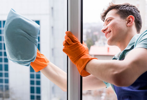 Our team of cleaners will then start by removing any cobwebs from the window and frame, then using tools and cleaning products, clean and wipe down all windows on your property leaving them streak free and gleaming!